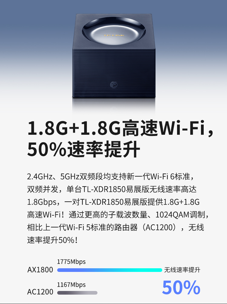 TP-LINK AX1800+1800易展mesh分布路由器 WiFi6 全千兆无线家用 5G智能双频 游戏路由 XDR1850易展版两只装 自营