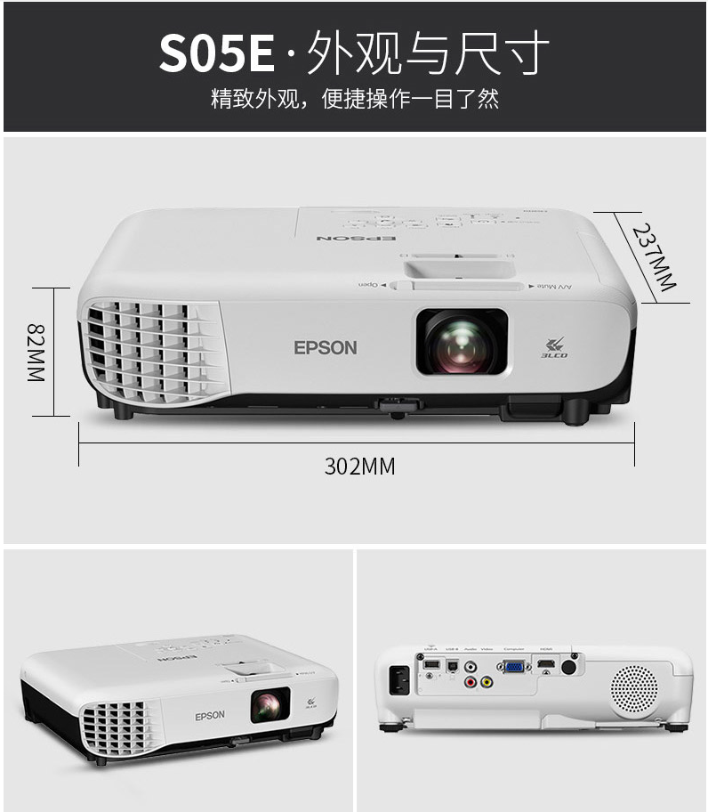 爱普生 投影机CB-X05 3300流明 自营