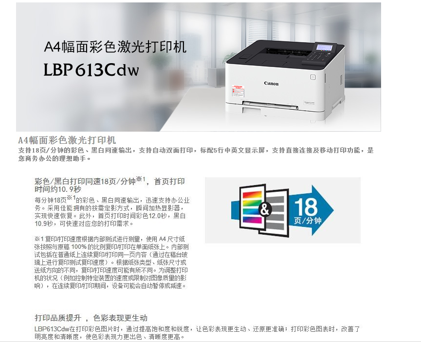 佳能(Canon)LBP613Cdw imageCLASS 智能彩立方 彩色激光打印机 自营