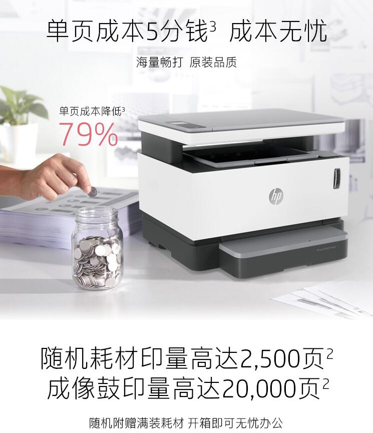 惠普(HP)Laser NS MFP 1005c 智能闪充激光多功能一体机 打印复印扫描 M1005升级半容装单打成本5分钱 自营