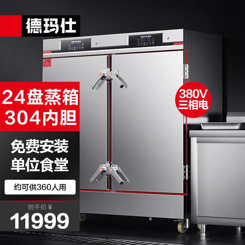 德玛仕(DEMASHI)蒸饭柜蒸饭车蒸箱商用蒸饭箱蒸饭机蒸箱食堂单位学校防干烧蒸柜304不锈钢内胆ZG-24D-L 自营
