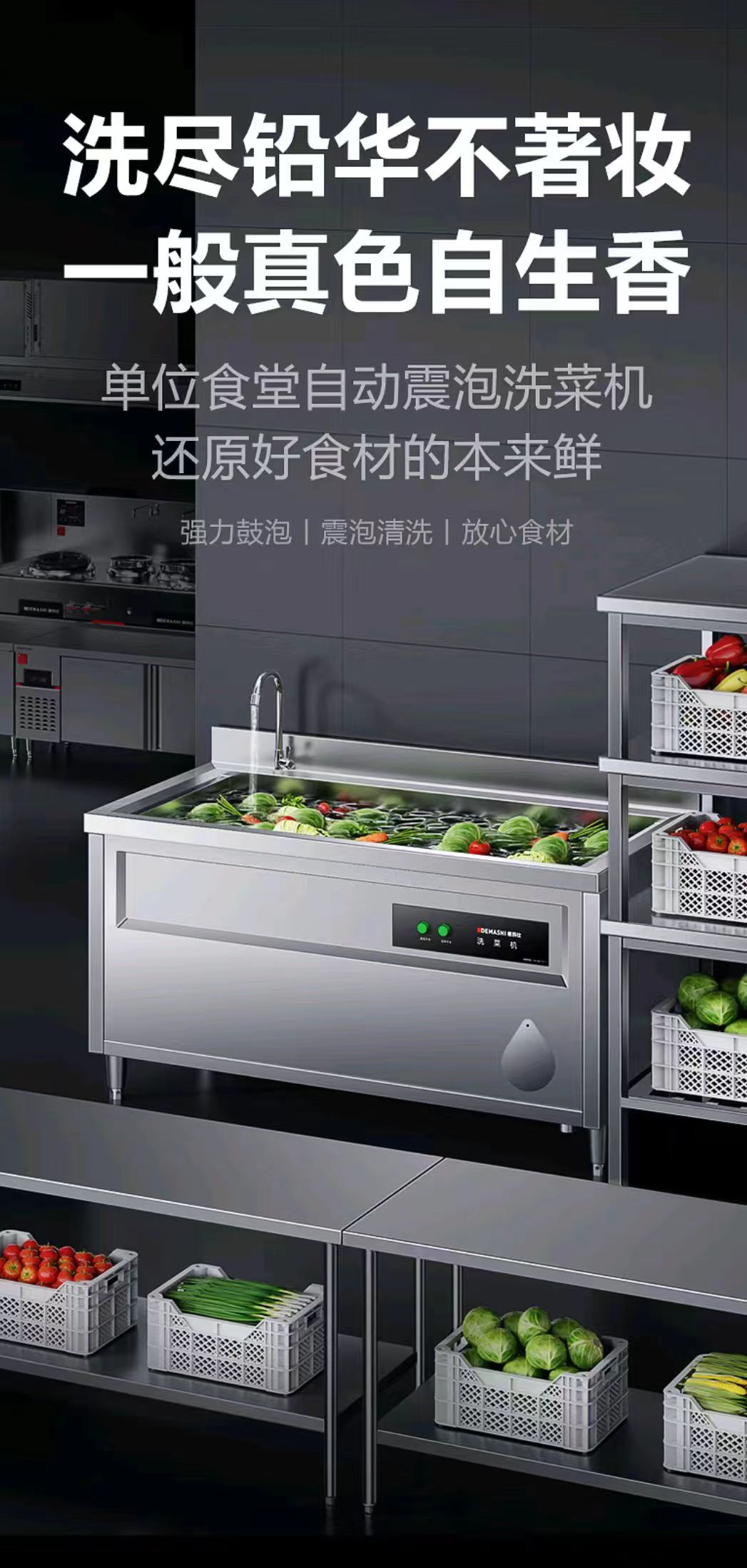 德玛仕(DEMASHI)商用洗菜机大型果蔬清洗机 鼓泡洗菜池商用 蔬菜水果食材净化机器FG-1500(1.5米工程款 ) 自营